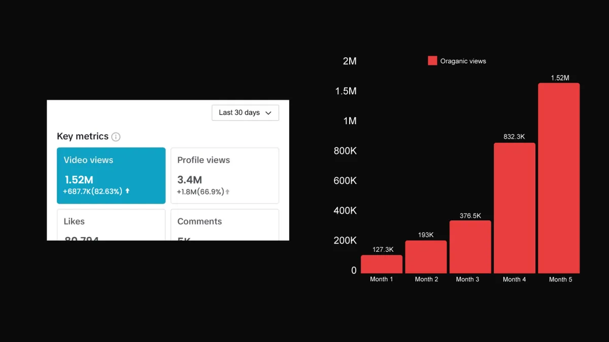 "When we started working together, I was generating a few million views monthly. In just six months, Eli and the SLS team helped me generate over 147M+ views and grow my account from 100K to 850K+ organic followers all without spending a dollar on paid media."